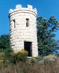 The Julien Dubuque Monument, built in 1897, sits high above the Mississippi River and provides the Landmark for the Mines of Spain Area. Julien Dubuque is buried on this site, which provides a scenic vista of the 1432-acre Mines of Spain, the city of Dubuque, the Mississippi River Valley, and Illinois. When Dubuque died, the Mesquakie buried him with tribal honors beneath a log mausoleum at the site where the current monument now stands.